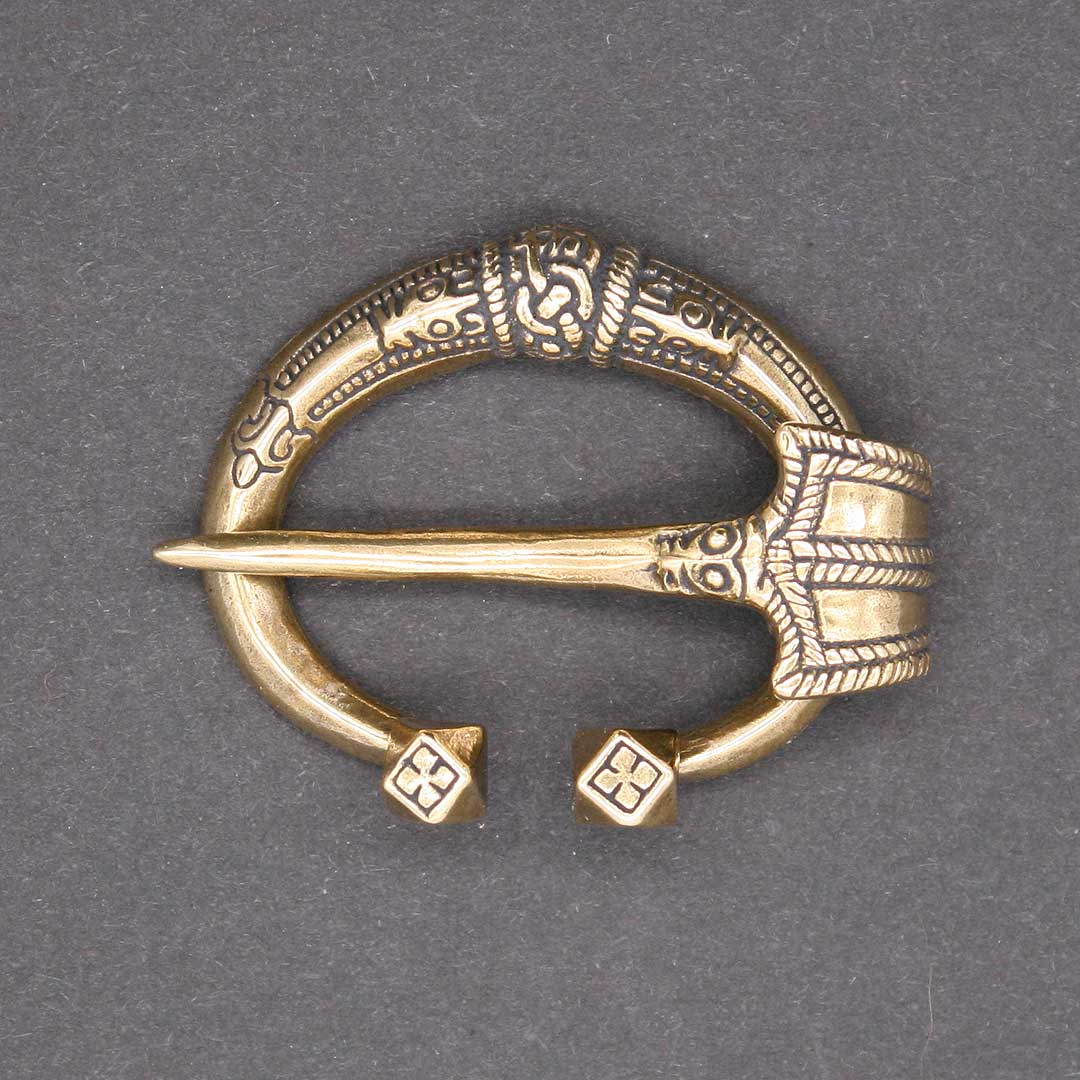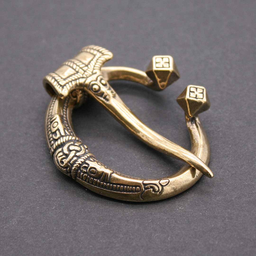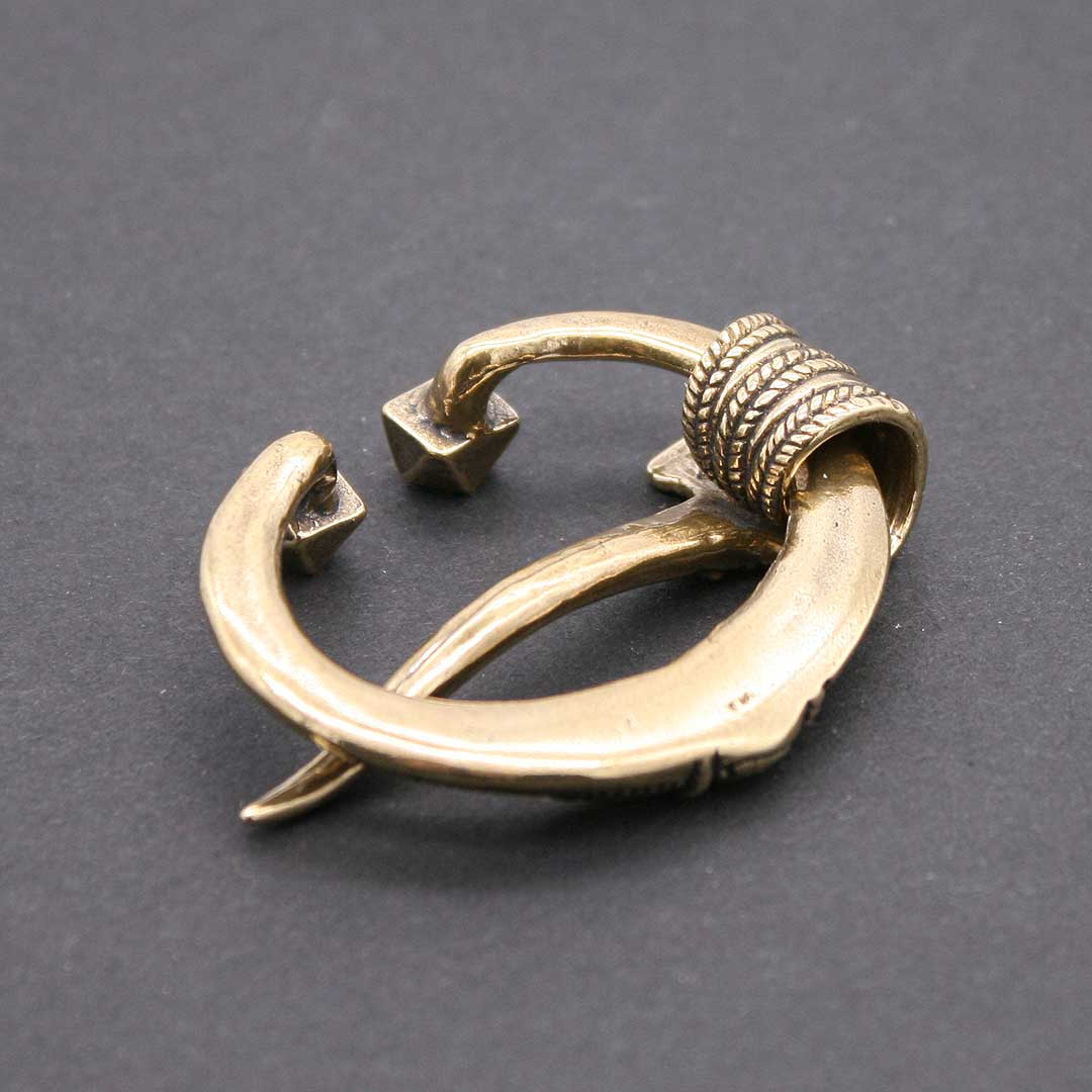 Wikinger Ringfibel / Hufeisenfibel. Nach einem Original aus Gotland, 10.-11. Jahrhundert. Messing, ca. 4,3 x 3,8 cm, Innenmaße ca. 2,4 cm x 3,3 cm. Nadellänge ca. 4,9 cm.