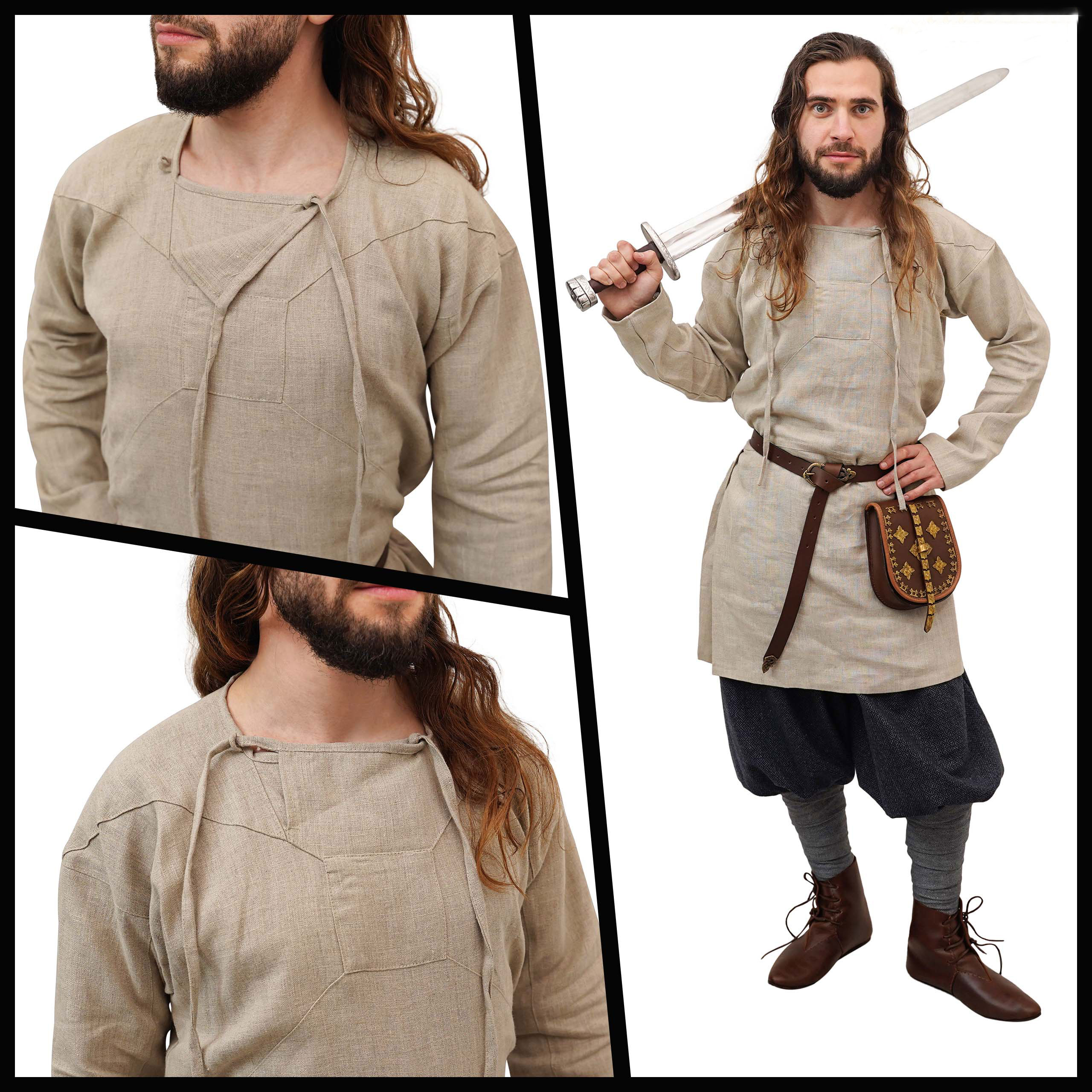 Wikinger-Tunika aus naturfarbenen Leinen nach Fund aus Viborg, Dänemark. Der Fund datiert in das frühe 11. Jahrhundert.